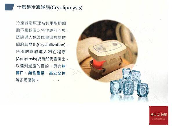 拜現代科技之賜,科學家發現在-4度以下的環境中,脂肪細胞會結晶化並凋亡,是安全有效的減脂療法喔~~